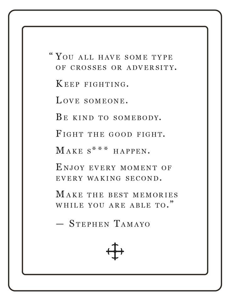 Stephen often mentioned how blessed he was because of his cancer. Not everyone is forced to re-evaluate their life and be given the opportunity to try and realign it; he was given that chance several times. He never saw it as an ailment, he saw it as an opportunity to improve himself. Stephen’s drive was inspirational. He made you want to push harder, work smarter, and just be better.